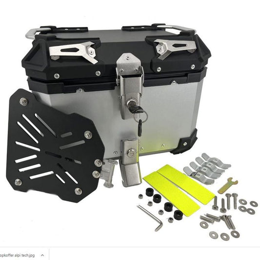 Topkoffer ALPI-TECH 55L zilver met universele bevestigingsplaat
